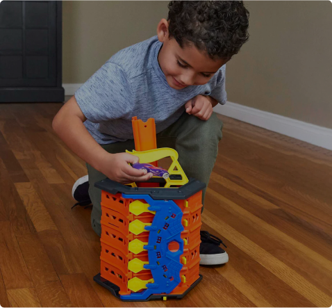 Gear up for pulse-pounding play! Thrill action fans with Hot Wheels track sets.